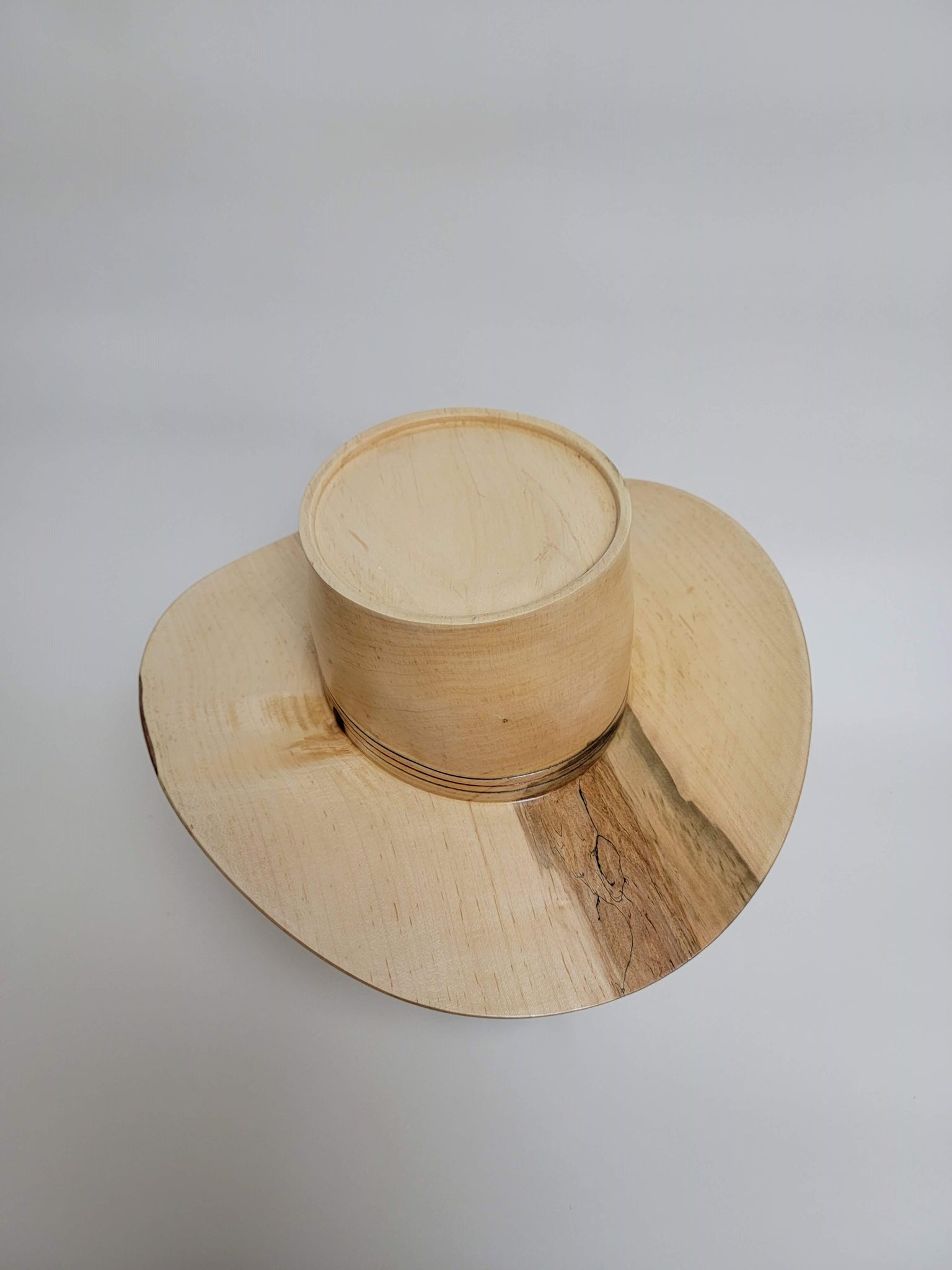 Beautiful wood-turned hat made from Maple signed and numbered by the artists, Linda and Brian Butler. Make a fashion statement in this unique hat!