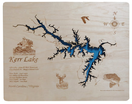 This is a beautiful, detailed, laser engraved and precision cut map, including lake information such as surface area, elevation and maximum depth.