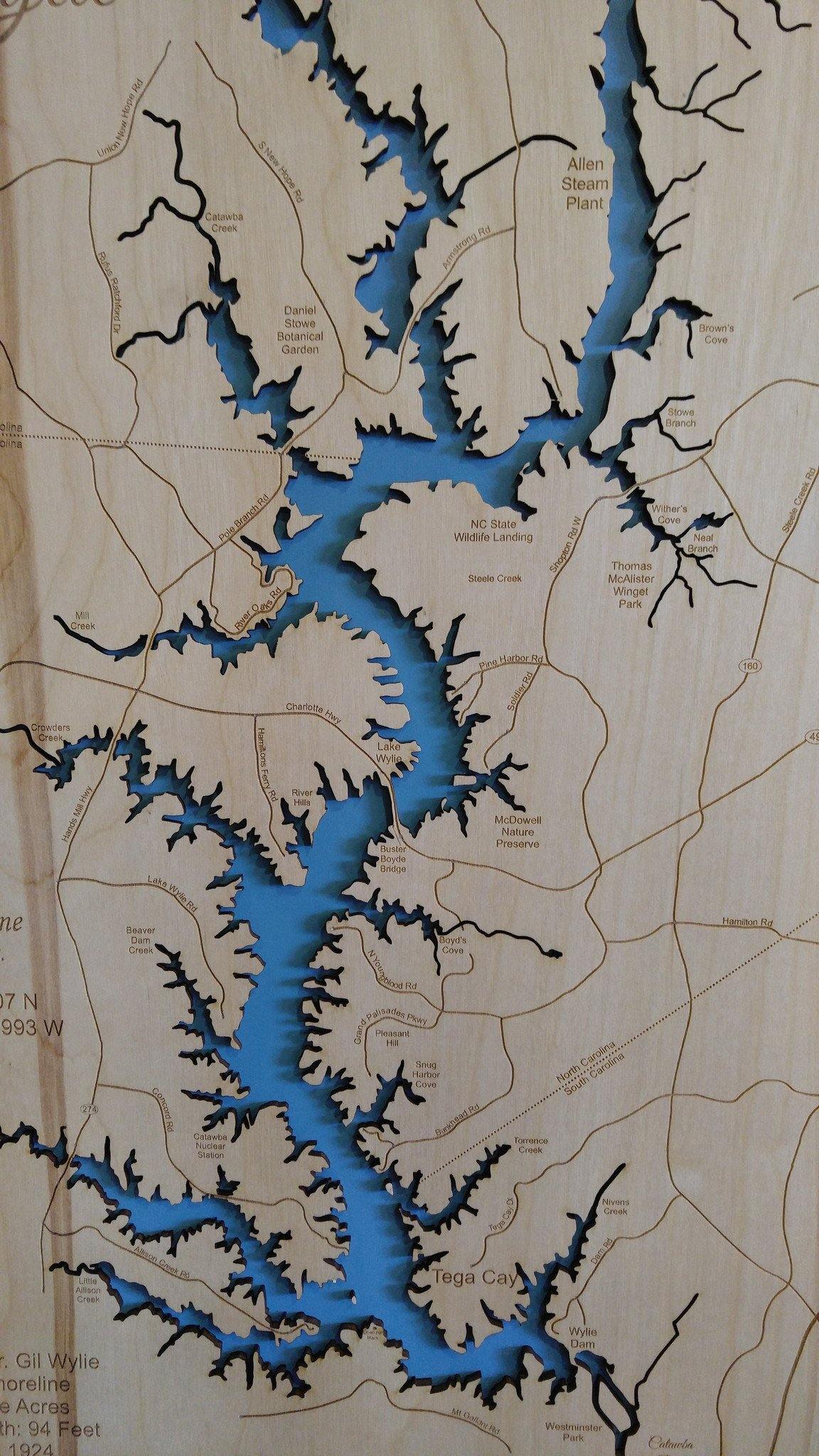 This is a beautiful, detailed, laser engraved and precision cut map, including lake information such as surface area, elevation and maximum depth.