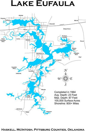 This is a beautiful, detailed, laser engraved and precision cut map, including lake information such as surface area, elevation and maximum depth.