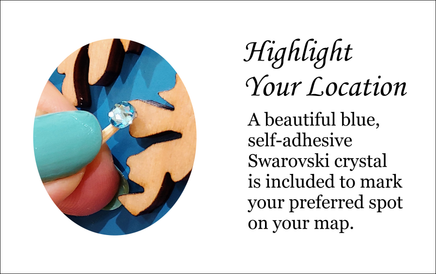 - A blue, self-adhesive Swarovski crystal to mark your preferred location on the map