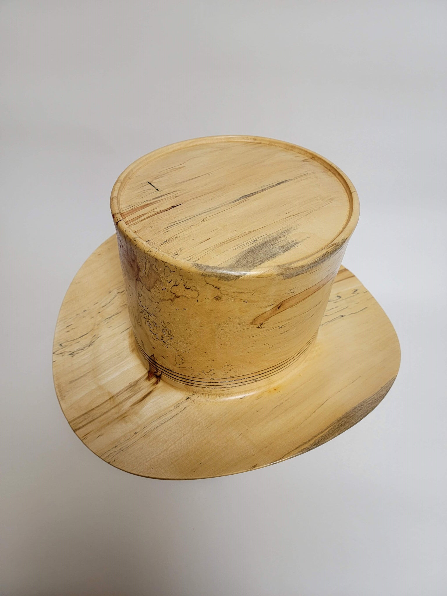 Beautiful wood-turned hat made from Box Elder. Make a fashion statement in this unique hat!