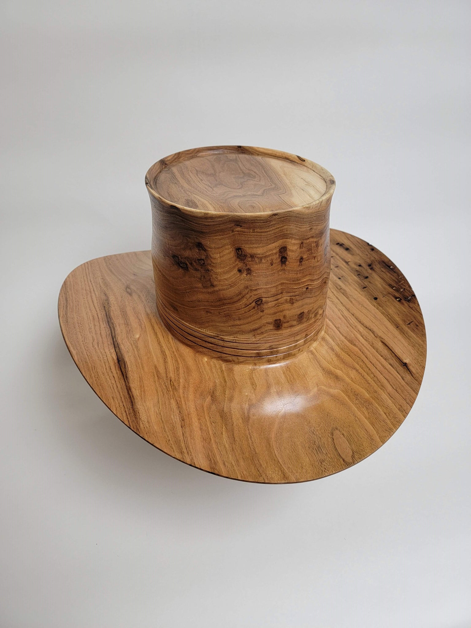 Beautiful wood-turned hat made from Butternut. Make a fashion statement in this unique hat!