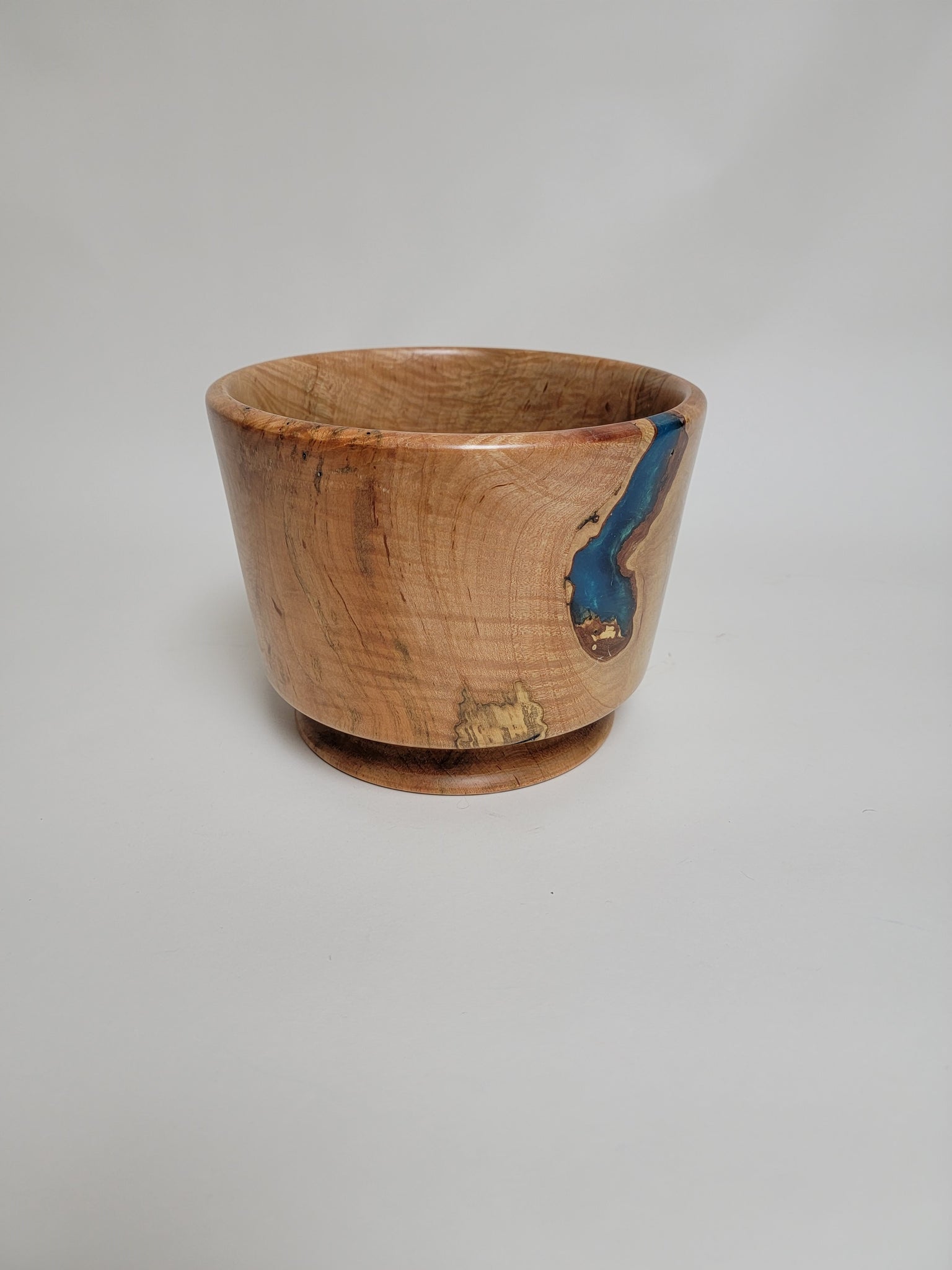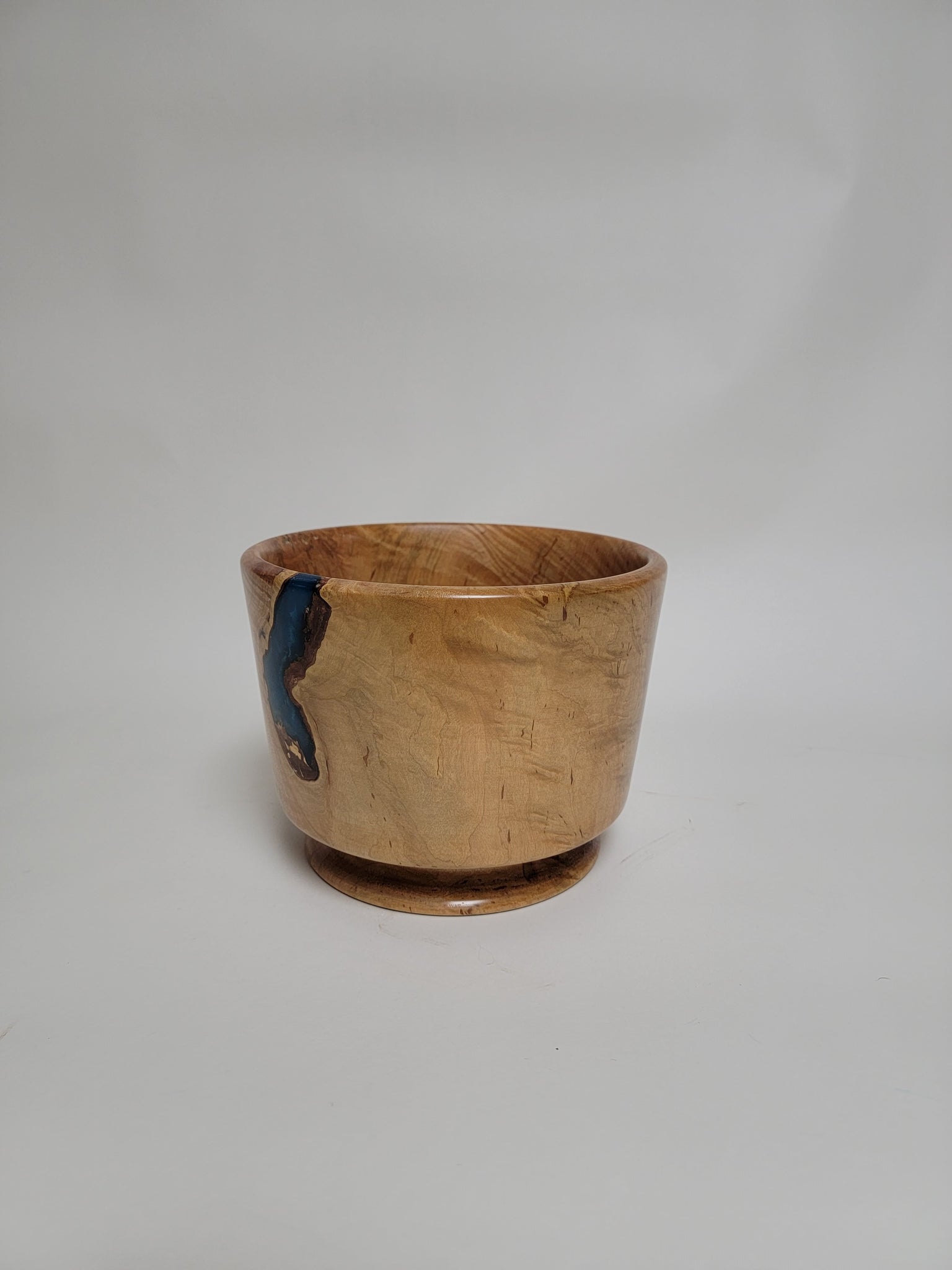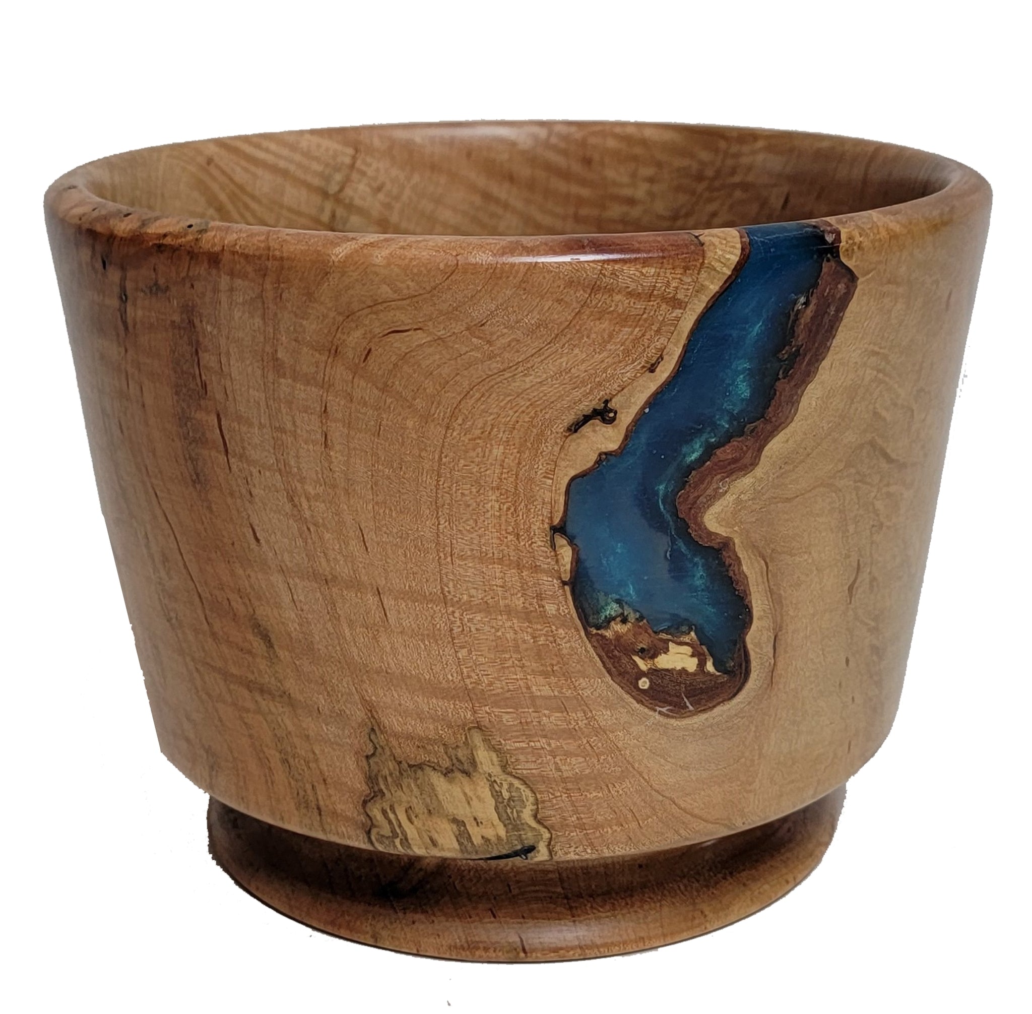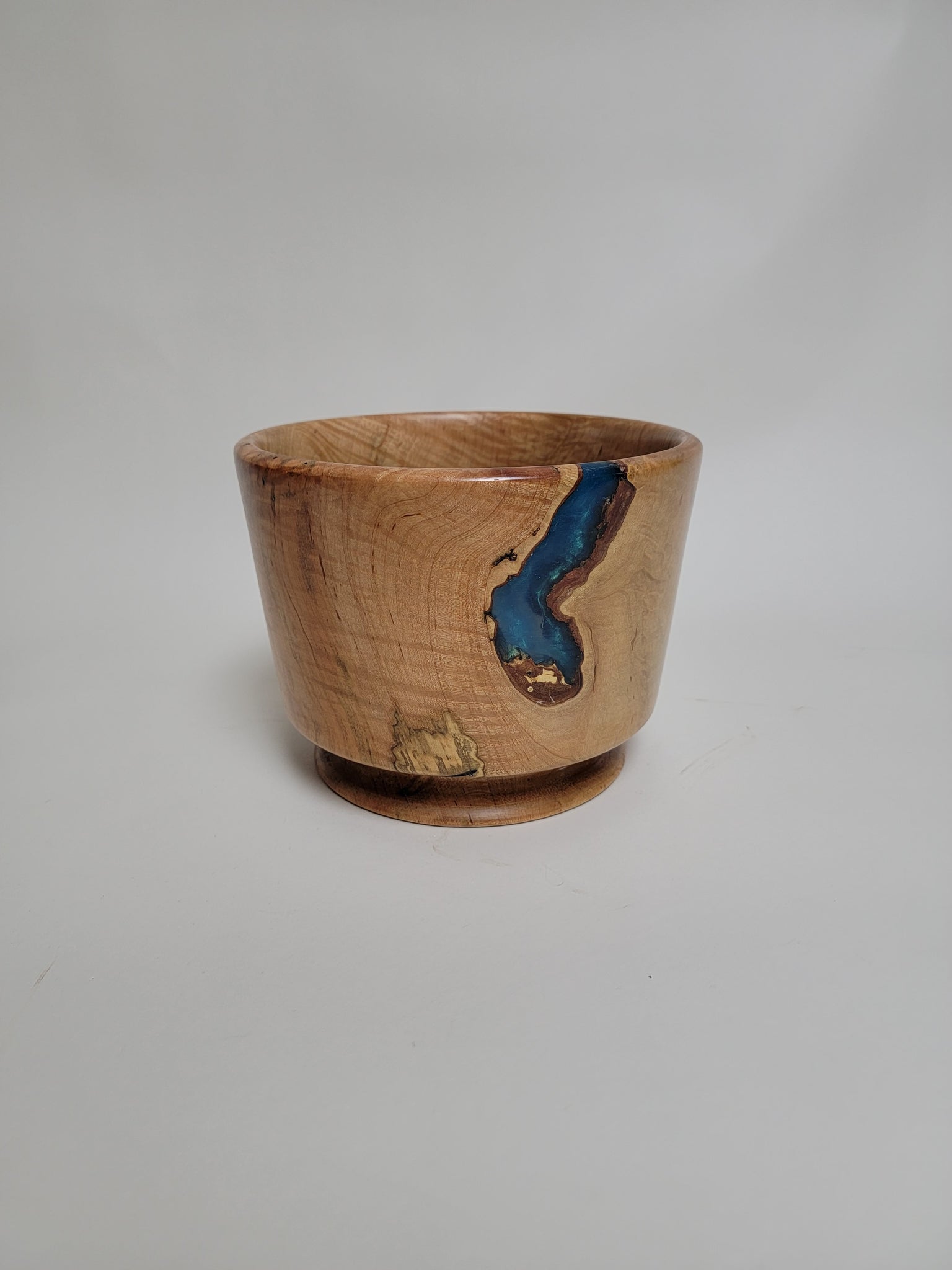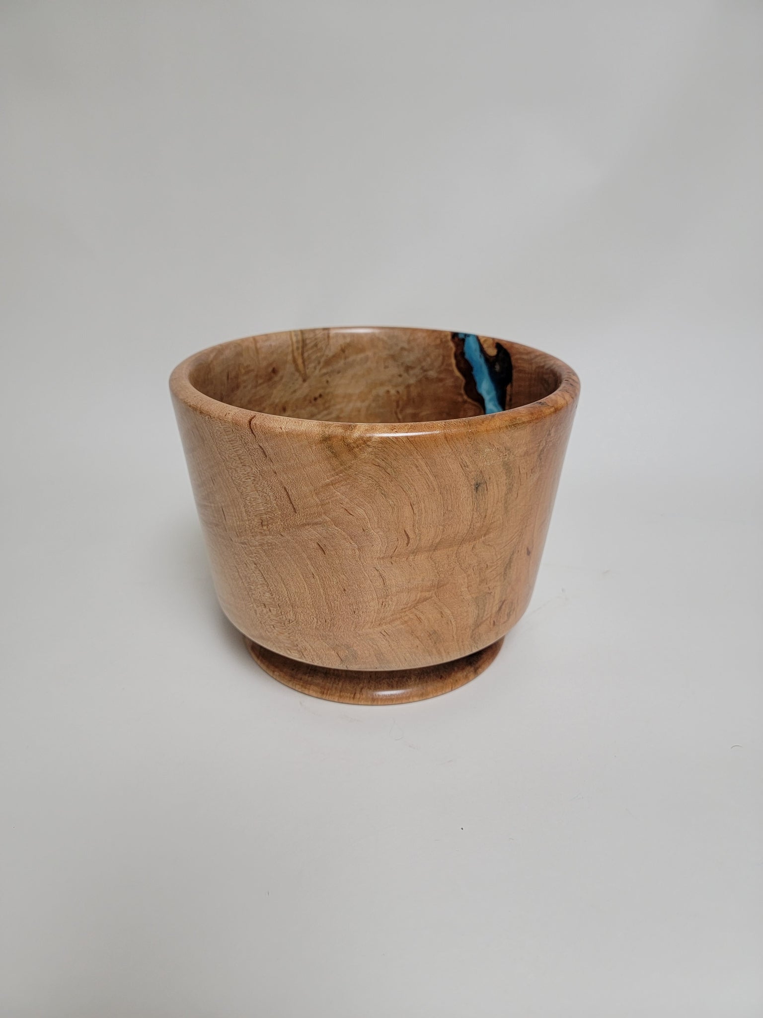 Beautiful wood-turned bowl made from Maple, with turquoise epoxy and signed by the artist, Ken Minyard.