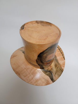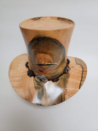 Beautiful wood-turned hat made from Maple. The knot in the front of the hat gives this piece even more character! Make a fashion statement in this unique hat!